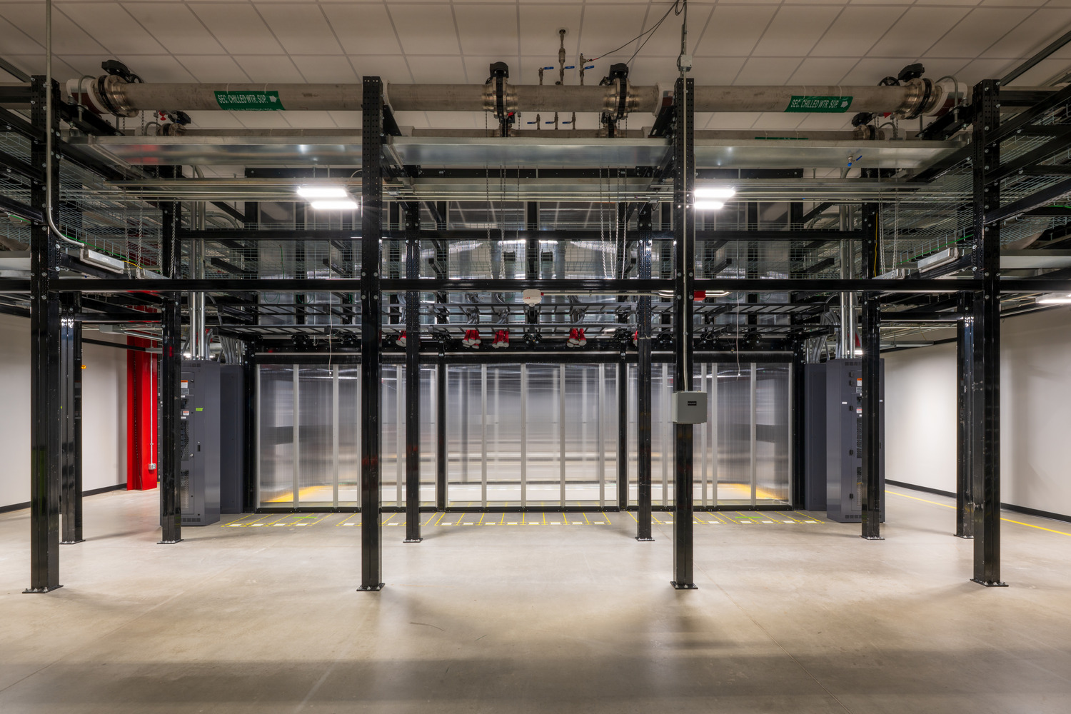 This single-story, 150,188 sq ft data center is liquid to chip and includes four data halls.